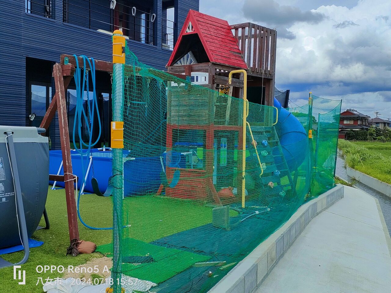 外構工事がまだまだなので、3歳児対応の用水路落下防止ネットを設置しました。何の対策もしなければ人災になるだろうし🤔出来る範囲の事はしとかなきゃ🤗