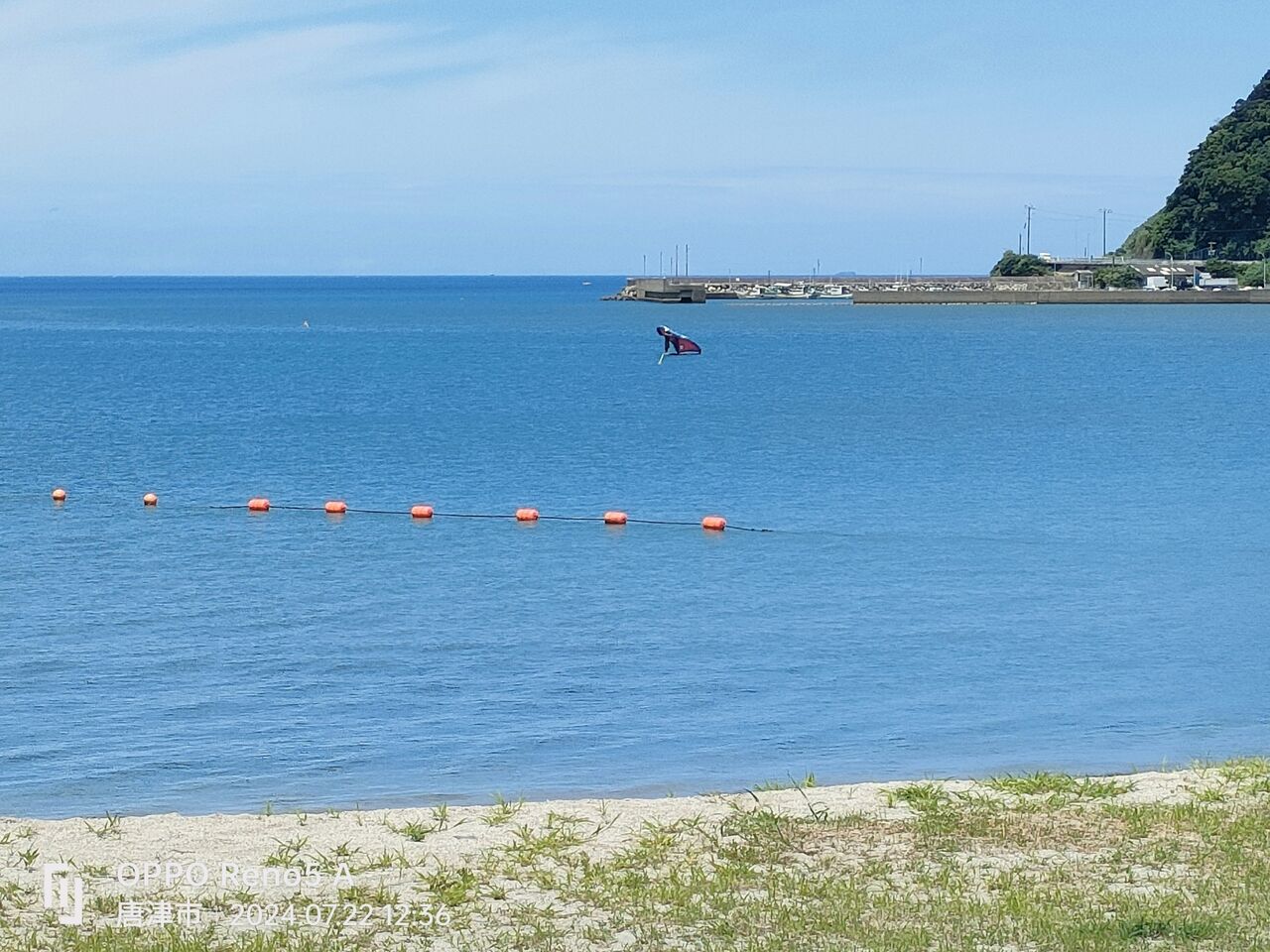 浜崎は平和な午後です。南西2〜3meterブローが西から4〜5meter WINGfoil3人ほど出ています。